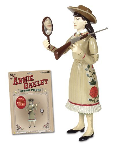 PRODUCT DESCRIPTIONS:Annie Oakley was so skilled with firearms that she could shoot a dime out of the air and shoot the ashes off a lit cigarette from thirty paces while standing with her back to her target and looking in a mirror! This 5-1/4" (13.3 cm) tall, hard vinyl action figure comes with a mirror and a rifle, so you can recreate her famous trick.