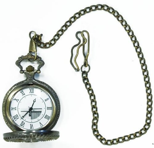 PRODUCT DESCRIPTIONS:*Chain measures 14" long *Highly detailed metal construction bright gold *Clasp closure push button open *Makes a great functional gift or costume accessory *Display box pillow collectible packaging *Actual watch is bright yellow gold! NOT antique color as shown! *Brand new