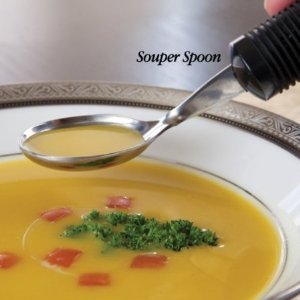 PRODUCT DESCRIPTIONS:Good Grips Weighted Souper SpoonExtra weight helps minimize tremors while eating.The 6 oz. (170g) of added weight in the built-up handle provides more control so that the utensil reaches the mouth easier. Ideal for persons with limited hand control, Parkinson’ s disease or spasticity. All weighted utensils provide the same benefits as the standard Good Grips® Cutlery. Sample Kit includes one each of the five utensils. This is an hygiene product and cannot be returned. Product photo may not exactly match the product offered for sale. Please refer to the product description.